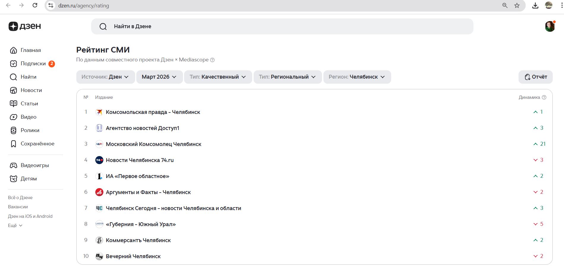 Входит в топ-5 по посещаемости среди СМИ Челябинской области по рейтингу Яндекс.Дзен (https://dzen.ru/agency/rating).