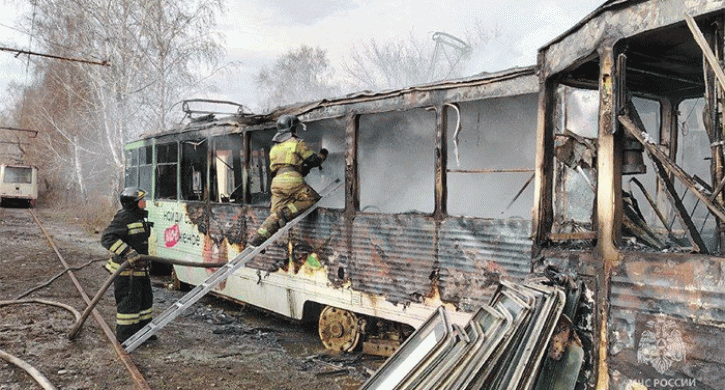 По информации регионального Главка МЧС, при утилизации старых трамваев на открытой территории проводились огневые работы, когда загорелась обшивка салонов трех вагонов.