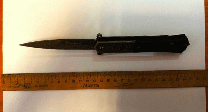 Пристав попросил выложить предмет, который оказался складным ножом. Парень пояснил, что нож ему нужен для перерезания спортивных бинтов.