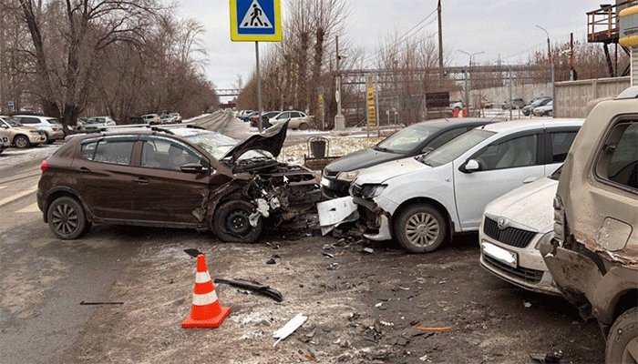 Все произошло днем 5 декабря. Предварительно известно, что 54-летний водителя Lifan во время движения по парковке не справился с управлением и совершил наезд на Mitsubishi, Ford, Lada Vesta, Kia Cerato, Logan и Chery.