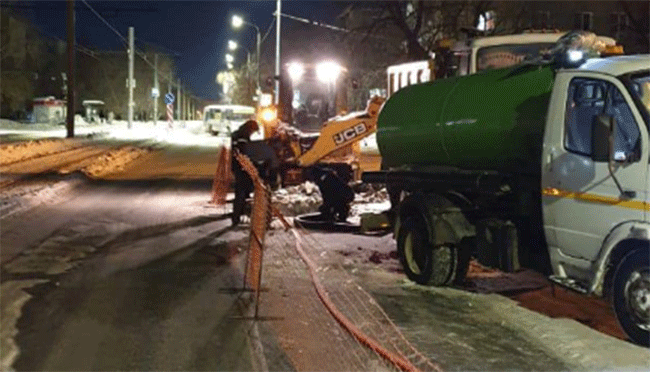 Сообщается, что вечером 23 января при проведении строительных работ был поврежден водовод диаметром 500 мм.