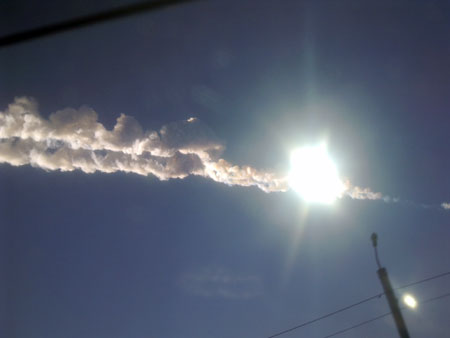 Напомним, в 9.20 в небе над Челябинском появился объект, который летел со скоростью, по предварительным подсчетам, 30-40 км/с, оставляя за собой след. Спустя пару минут возникла яркая вспышка с тепловой волной, затем последовательно раздалось несколько «взрывов», и ударной волной во многих домах Челябинска, Копейска и Коркино повыбивало стекла.