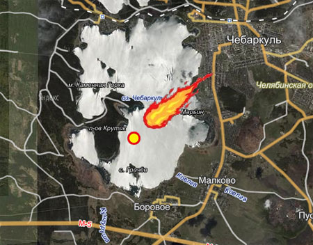 «Виновника» утреннего переполоха все же удалось найти в регионе. Правда, лишь спустя почти четыре часа. По данным оперативного штаба, созванного для устранения ЧС, один из осколков метеорита приземлился в озеро Чебаркуль, второй спикировал под Златоустом, близ деревни Куваши. Штабом организованы радиационный и химический мониторинг по всему региону. По данным МЧС, радиационный фон находится в норме.