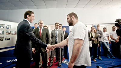 После общения Михаил Юревич и Федор Емельяненко осмотрели новое помещение для занятий смешанными единоборствами. Зал расположился во дворце спорта «Юность» на 400 квадратных метрах. Здесь удобные раздевалки, душевые, сам тренировочный зал занял почти 250 квадратных метров. Помещение было выделено Челябинском, а ремонт на сумму более 4 млн рублей производился силами Федерации смешанных единоборств и спонсоров. Глава региона отметил, что Челябинская область будет поддерживать такие проекты.