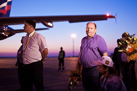 Яркий свет от телекамер ослеплял выходивших из самолета пассажиров. Одни проявляли полное безразличие, спешили поскорее скрыться, другие поднимали большой палец кверху, радуясь тому, что попали в объектив. Наконец, на трапе появился министр спорта Челябинской области Юрий Серебренников. «Веселый полет получился. Самолет ходуном ходил. Командир экипажа всем сообщил, что на борту находится олимпийский чемпион, Мансуру устроили овацию», – рассказал он.