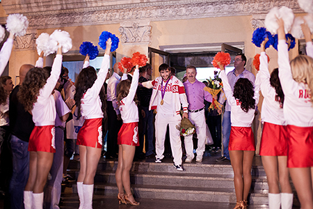На выходе из аэропорта южноуральских олимпийцев ждал новый сюрприз. С транспарантами, баннерами, цветами и речевками их встречали более сотни болельщиков. Добавили праздничного настроения и стройные девушки-красавицы из команды черлидинга со своими помпонами и заранее приготовленными кричалками. «Ну вот, как оперативно вы работаете, уже и невесту мне подыскали на выбор», – расплылся в улыбке увидевший их Мансур Исаев.