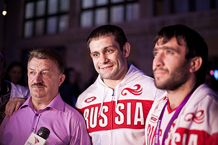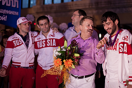 И тут появился сам чемпион. В белой спортивной форме, с золотой медалью на шее. Мансур Исаев говорил, что свою золотую медаль до сих пор не снимал, но в это особо не верилось. За ним появились и другие наши олимпийцы – дзюдоист Кирилл Денисов, тренеры российской команды Виталий Макаров и Дмитрий Морозов. Практически никем не замеченным оказался стрелок Денис Кулаков.