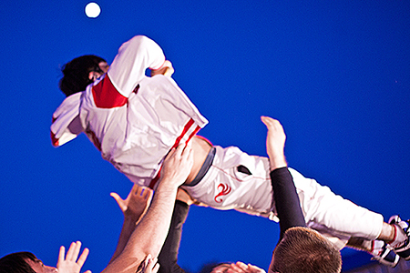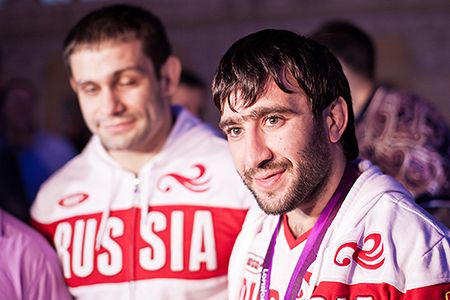 Журналисты между тем просили чемпиона исполнить лезгинку. Мансур скромно отказывался. Но спустя некоторое время, очутившись в компании своих друзей, чемпион все-таки пустился в пляс. Поддержал его порыв Ренат Саидов, известный челябинский дзюдоист-тяжеловес. Вместе с еще одним дзюдоистом Сосланом Бостановым они принялись качать чемпиона. Два гиганта, за 120 килограммов весом, едва не перестарались, запустив Мансура очень высоко, да так, что с трудом его поймали.