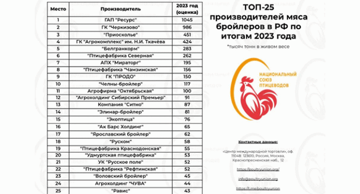 Издание «Ветеринария и жизнь» сообщает, что рейтинг представил Национальный союз птицеводов.