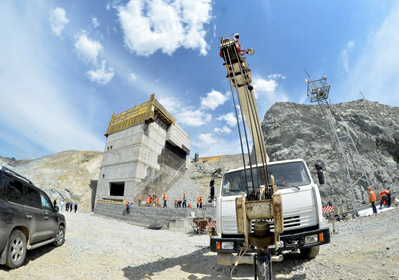 На данный момент объемы строительных работ по обогатительной фабрике выполнены на 73%. Здесь изготовлен и смонтирован каркас производственного корпуса, построены фундаменты под оборудование, ведется монтаж рудного конвейера, соединяющего гирационную дробилку с обогатительной фабрикой.
