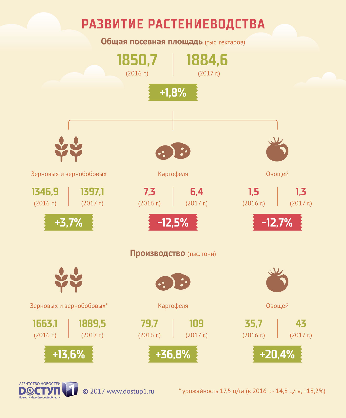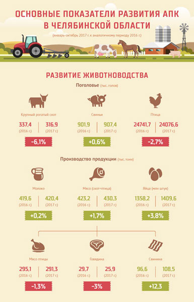 Вклад агропромышленного комплекса Челябинской области в экономику региона становится все заметнее. Устойчивая положительная динамика наблюдается как в растениеводстве, так и в животноводстве. Достижения АПК в 2017 году – в ИНФОГРАФИКЕ АН «Доступ».