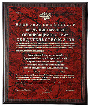 РФЯЦ – ВНИИТФ в Снежинске (ЗАТО, Челябинская область) признан ведущей научной организацией России-2012 – научно-исследовательский институт внесен в Национальный реестр, передает корреспондент Агентства новостей «Доступ» со ссылкой на пресс-службу НИИ технической физики.