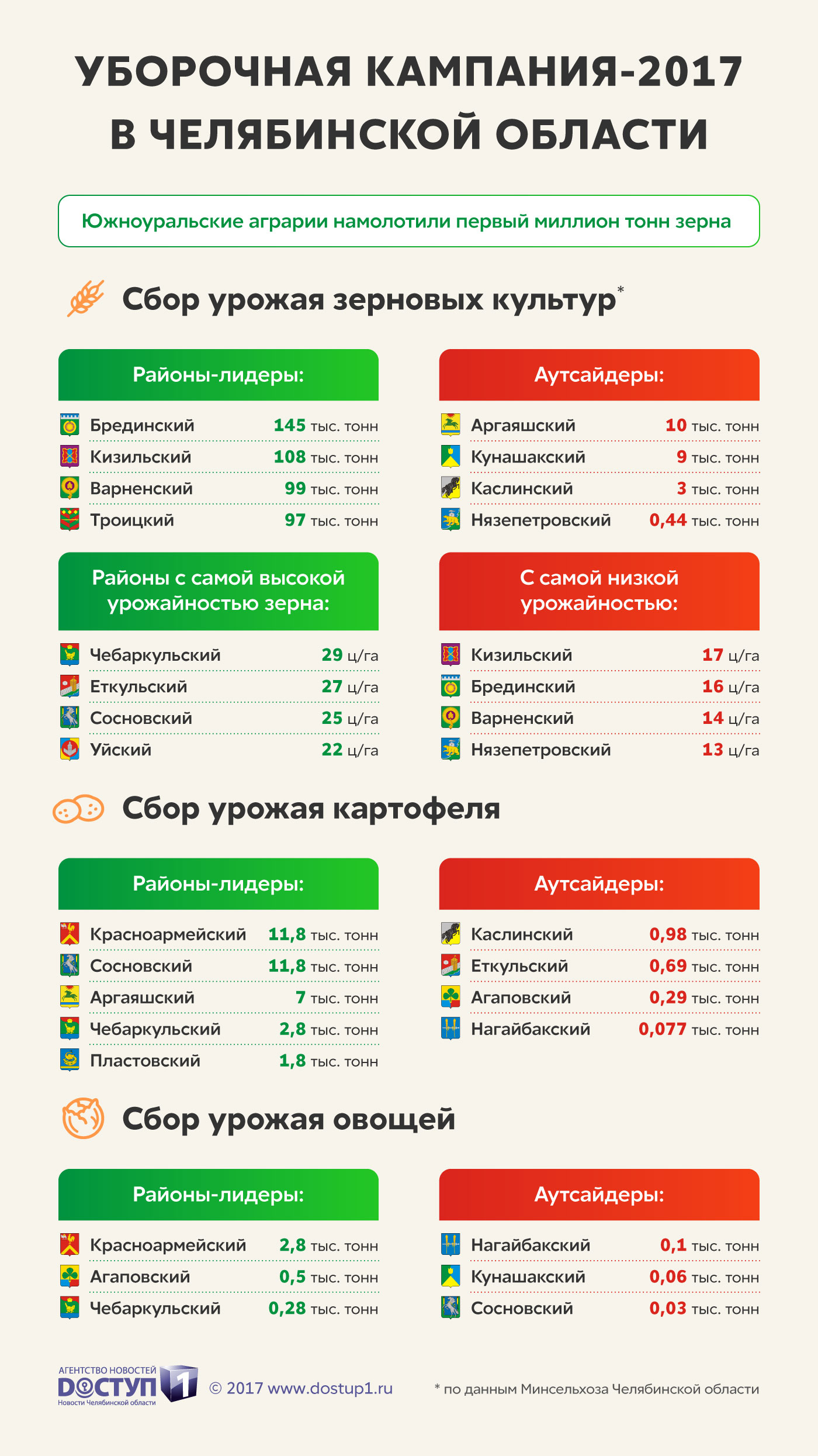 Напомним, в планах южноуральских аграриев – намолотить в ходе уборочной кампании 2017 года не менее 2 млн тонн зерна.