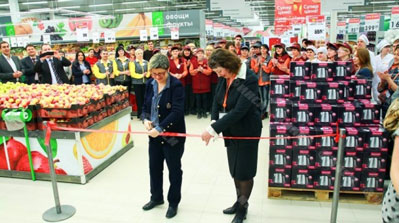 Торжественное открытие гипермаркета состоялось 22 февраля. Тысячи покупателей, побывавших с этот день в новом магазине на проспекте Октября, по достоинству оценили широкий ассортимент товаров и высокий уровень сервиса — гостей ждали подарки и специальные ценовые предложения, а также мастер-класс по кулинарии от известного шеф-повара.