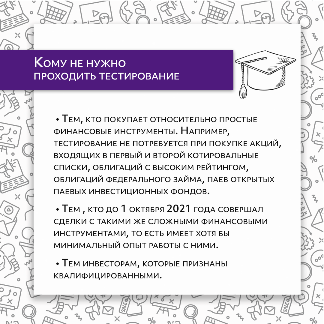 Тестирование не нужно проходить тем, кто покупает простые финансовые инструменты.