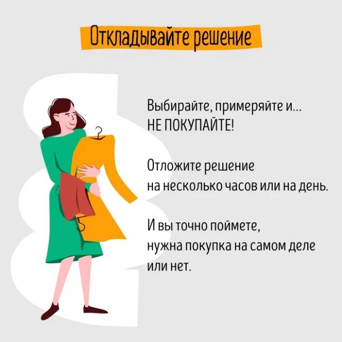 Чтобы ее не образовалось, Центробанк советует посмотреть вещь, если есть возможность, примерить. А затем отложить на несколько часов или дней. И только потом покупать или нет.