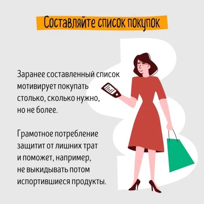 Перед походом в магазин следует составить список покупок. Он мотивирует покупать ровно столько, сколько необходимо.