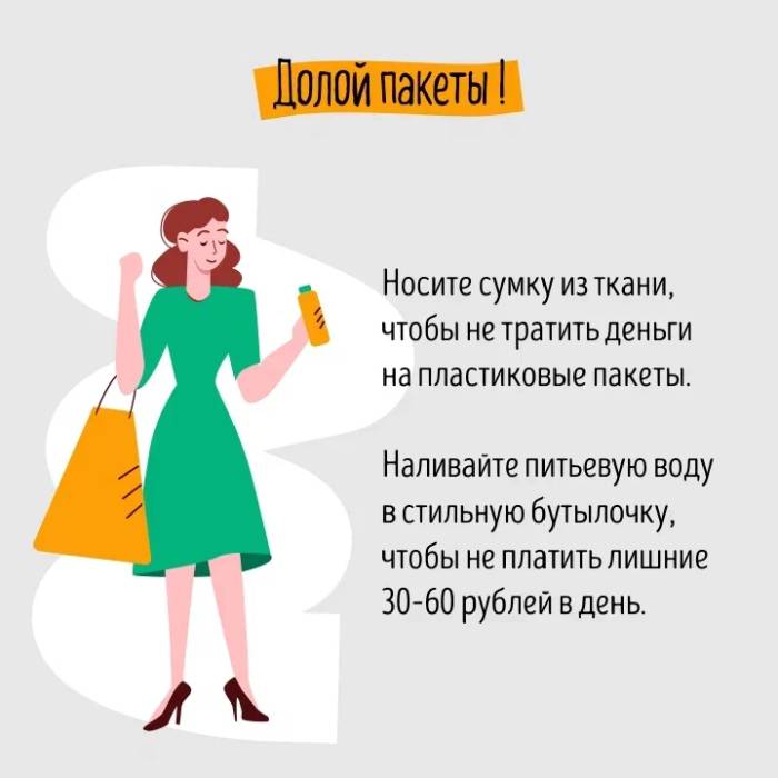 Также следует носить с собой пакеты, чтобы не тратить на них деньги в магазине. А также брать с собой свою бутылочку воды, чтобы не покупать ее в случае жажды.