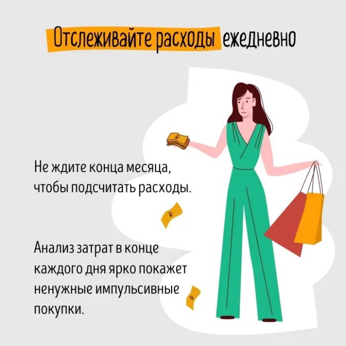 Необходимо ежедневно отслеживать расходы, они позволят отслеживать импульсивные покупки.