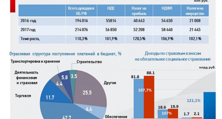 В отраслевой структуре ведущую позицию заняли платежи обрабатывающих производств (43%). По сравнению с 2016 годом они выросли на 7% и составили 90 млрд рублей.