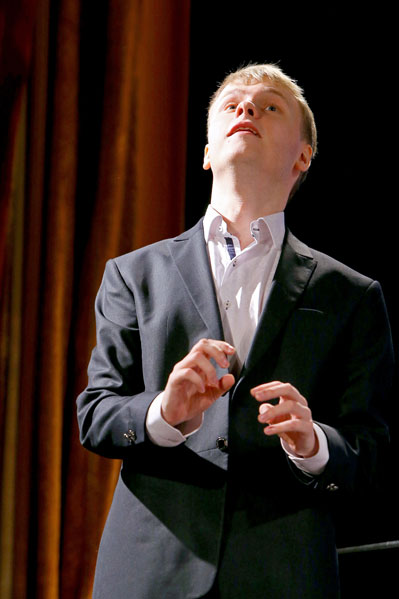 Олег от рождения слепой. Родителям такой ребенок был не нужен и его сразу «сплавили» бабушке с дедушкой. В четыре года мальчик начал подбирать по слуху мелодии на фортепиано. Благодаря чужим, но неравнодушным людям, у него появилась возможность учиться по особой системе в особой школе, шанс он использовал на все 100 процентов и поступил в Московскую консерваторию. Сейчас Олег – концертирующий пианист, выступает как с классическими программами, так и в джазовых концертах, поет на разных языках и подражает разным певцам, а еще успевает учиться в аспирантуре.