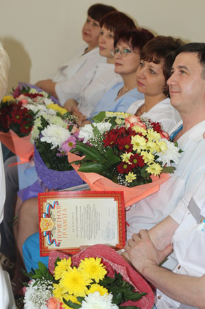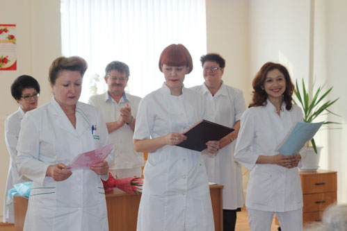 На празднование юбилея отделения пришли врачи-ветераны, коллеги и представители администрации медсанчасти. Эндоскописты Валентин Киселев и Олег Ставцев получили почетные грамоты главы Магнитогорска. За многолетний труд благодарственные письма управления здравоохранения вручены медсестрам Марине Будорагиной и Елене Ивлевой. Также на мероприятии были вручены благодарственные письма от профкома медсанчасти ветеранам отделения.