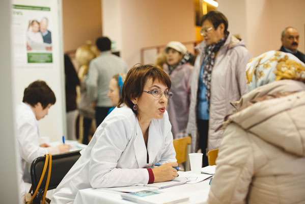 С самого утра поток посетителей не ослабевает. Исследования проводятся в режиме живой очереди – быстро, организованно, без толчеи и долгого ожидания. Отдельный фурор произвела выставка социального плаката, посвященная праву человека на охрану здоровья, на которой представлены работы художников со всего мира.