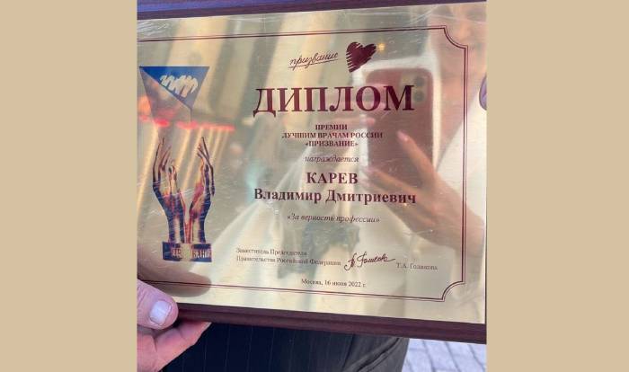 Награждение прошло 16 июня в Доме правительства в Москве. Награду врачу вручили зам председателя правительства РФ Татьяна Голикова и ведущая передачи «Жить здорово» Елена Малышева.