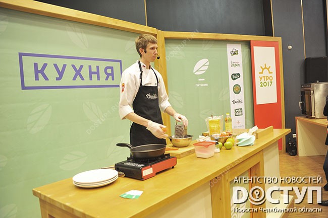 Для любителей здорового питания кулинарная студия провела мастер-класс по приготовлению вкусной и здоровой пищи. «Сегодня мы готовим морковные драники с яблоком и творожным сыром. Это полезные и доступные каждому продукты», – пояснил шеф-повар студии «Базилик» Артем.