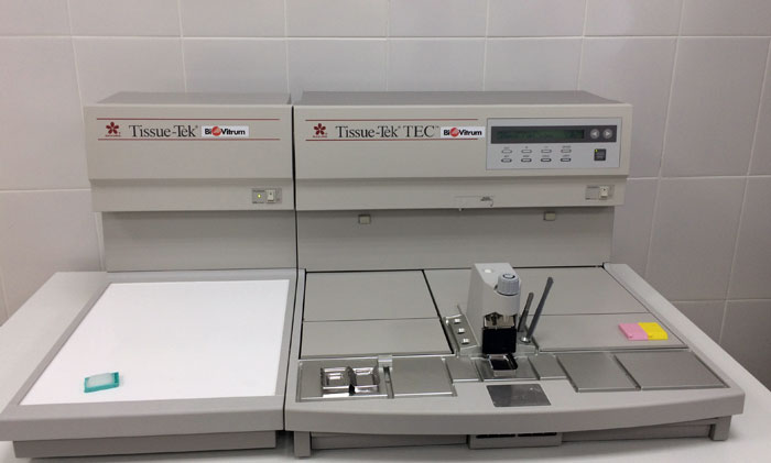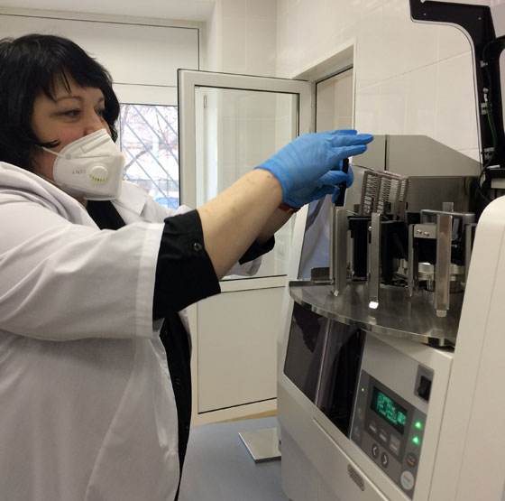 В создание референс-центра на базе клиники ЮУГМУ вложено 72млн рублей, что позволило оснастить его самым современным оборудованием. Роботизированная станция для проведения гистологических исследований позволяет работать с биологическим материалом быстро, качественно и максимально исключить погрешности, связанные с человеческим фактором. Центр оснащен самым современным иммуностейнером, а также гибридайзером для проведения иммуногистохимических и молекулярно-генетических исследований – флюоресцентной гибридизации in situ, что необходимо для назначения таргетной терапии, то есть лечения препаратами, которые блокируют рост и распространение опухолевых клеток с помощью воздействия на специфические молекулы. Сканирующий микроскоп позволяет сканировать гистологические препараты и получать электронные изображения, которыми можно обмениваться с другими медицинскими организациями для проведения телемедицинских консультаций. Его максимальная единовременная загрузка – 210 препаратов, при этом каждый сканируется не более четырех с половиной минут. Архив гистосканов позволит оценивать морфологию опухоли в динамике и терапевтический патоморфоз.
