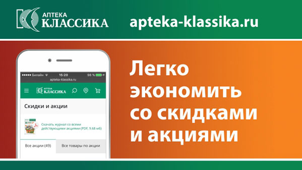 Попробовать воспользоваться новым сервисом можно прямо сейчас – для этого достаточно зайти на сайт apteka-klassika.ru со своего мобильного устройства.