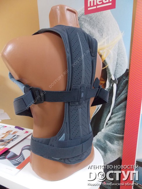 Региональный представитель немецкой компании, занимающейся ортопедией и медицинским компрессионным трикотажем, представил на выставке спиномед – специальный тренажер корректор. Пластина, расположенная вдоль позвоночника, заставляет при ходьбе напрягаться мышцы вдоль позвоночного столба, происходит приток крови и исправление осанки.