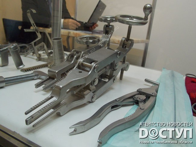 Также екатеринбуржцы привезли уникальный ранорасширитель, который крепится к операционному столу и позволяет увеличить двухсантиметровый разрез до необходимого размера при операциях на брюшной и грудной полостях и позвоночнике, не травмируя ткани. В Челябинской области таких приспособлений пока вообще не используют.