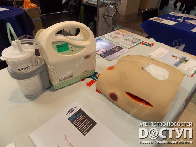 Среди наиболее интересных экспонатов – продукция московской компании «Финка». Они привезли аппарат для лечения ран с помощью отрицательного давления.
