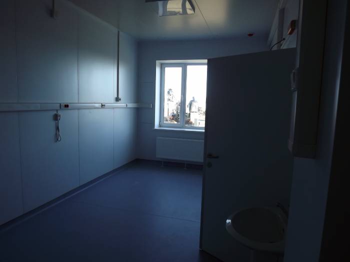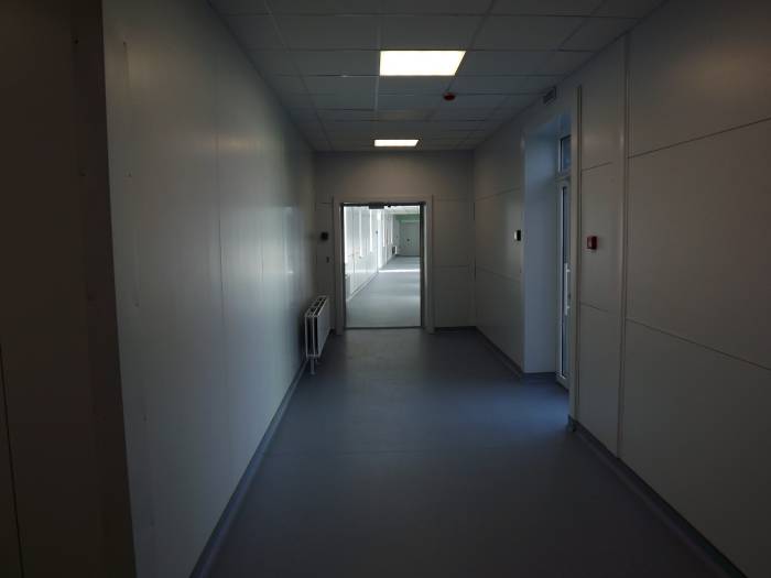 На стройплощадку прибывает делегация правительства региона и ныряет в корпуса. Интерьер встречает сплошной – от пола до потолка – белизной и полной пустотой. Но уже скоро здесь должны появиться мебель и медицинское оборудование, а сразу после этого палаты примут пациентов с коронавирусом. Три корпуса второй очереди рассчитаны на 54 человека в стандартном режиме, но в случае чрезвычайной ситуации они смогут принять до 260 больных. Впрочем, до этого, скорее всего, не дойдет, полагает первый вице-губернатор Ирина Гехт – уже несколько недель динамика распространения COVID-19 в регионе демонстрирует стабильный спад.