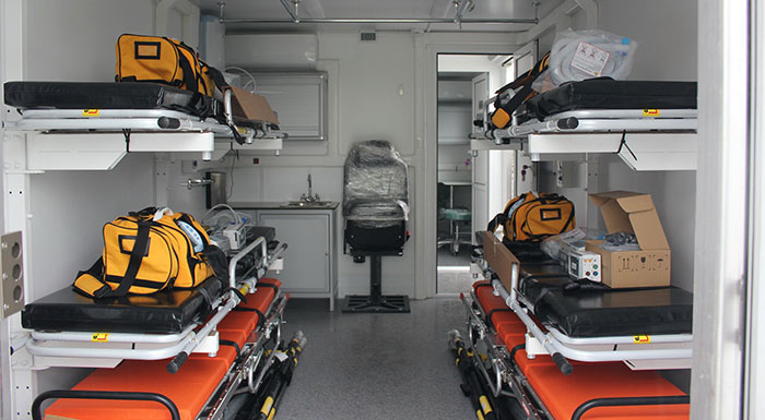 На борту расположились четыре комплекта аппаратуры жизнеобеспечения, портативный аппарат УЗИ, предусмотрены запас кислорода, медицинские укладки, система воздушной дезинфекции. Для связи и сбора информации работают два ноутбука и четыре портативных радиостанции, а также система позиционирования ГЛОНАСС. Дополнительно КАМАЗ оснащен амбулифтом для подъема и спуска больных, съемным тентом для развертывания приемно-сортировочного поста.