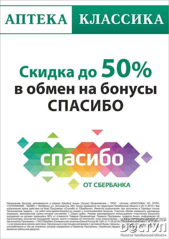 За покупки по карте Сбербанка в «Классике» вы будете получать 3% бонусами СПАСИБО с каждой оплаченной суммы. В аптеках можно обменивать бонусы на скидку до 50% от стоимости товара накопленными бонусами СПАСИБО.