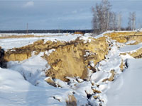 «Южуралзолото» отказывается участвовать в финансировании переноса нефтепроводов от своего карьера, между тем, трещина в непосредственной близости от трубы расширилась и грозит обрушением.