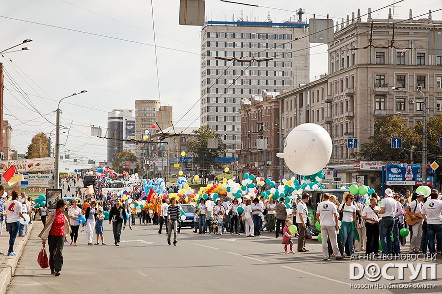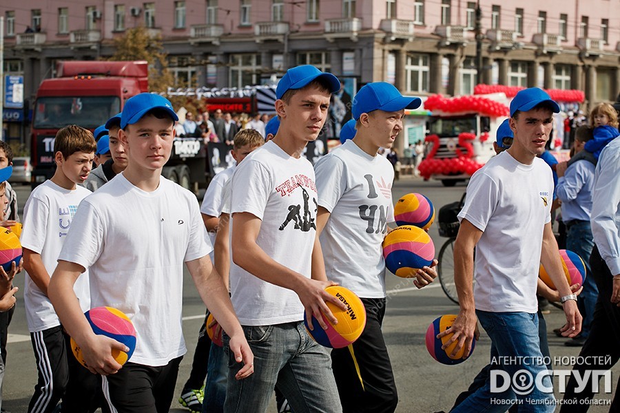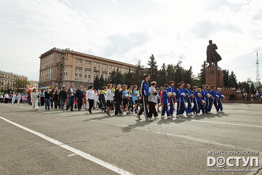 Празднование 276-летия южноуральской столицы началось с традиционного общегородского шествия под девизом «Челябинск молодой – Челябинск спортивный». По площади Революции прошли семь колонн от всех районов города, в каждой – ровно по 500 участников.