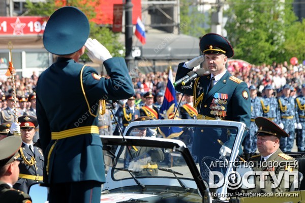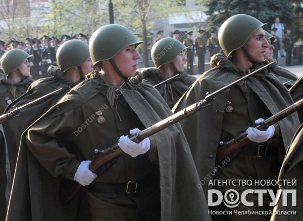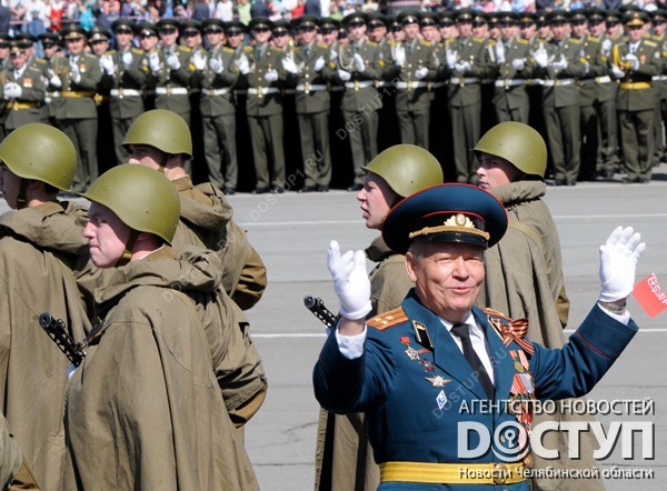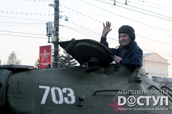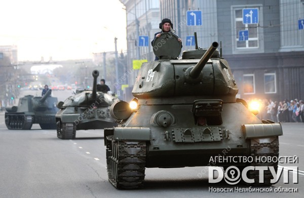 Челябинск празднует юбилей Великой Победы. Репетиция парада и парад на площади Революции, салют.