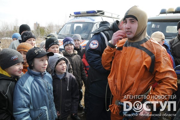 Челябинские МЧСники провели урок ОБЖ со школьниками и предупредили рыболовов об опасности весеннего льда