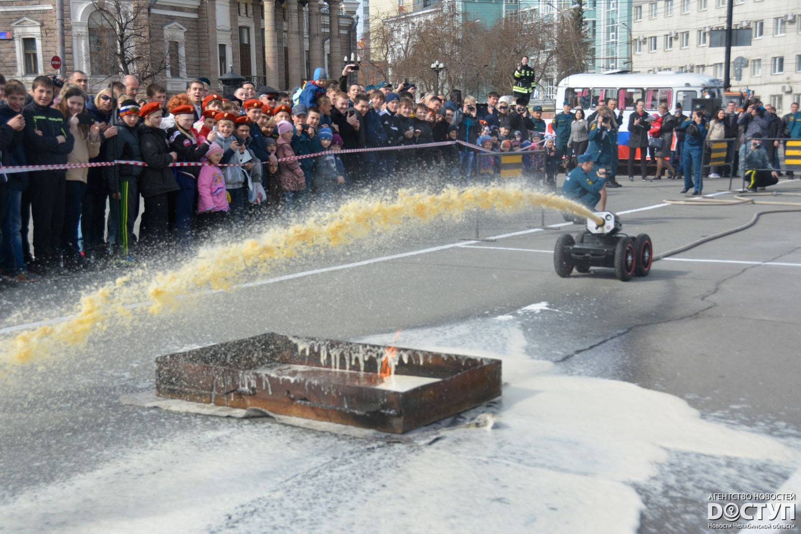 На центральной площади Челябинска состоялось празднование 365-летия пожарной охраны России. Сотрудники МЧС продемонстрировали современные и раритетные машины для борьбы с огнем. Кроме того, состоялась реконструкция тушения Молодежного театра и соревнования среди огнеборцев.