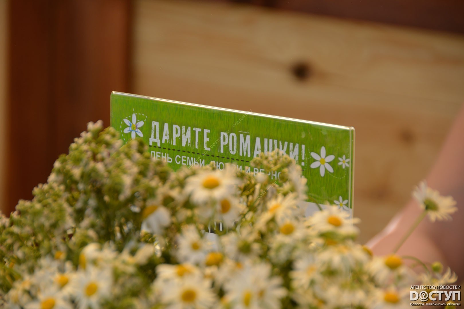 В Челябинске 8 июля состоялось празднование Дня семьи, любви и верности. Главной темой мероприятия праздника стали ромашки – традиционный символ праздника. Работали площадки по созданию ромашкового чая и сувениров в виде этого цветка. Также можно было погадать на гигантской ромашке, сфотографироваться на фоне огромной надписи «семья».