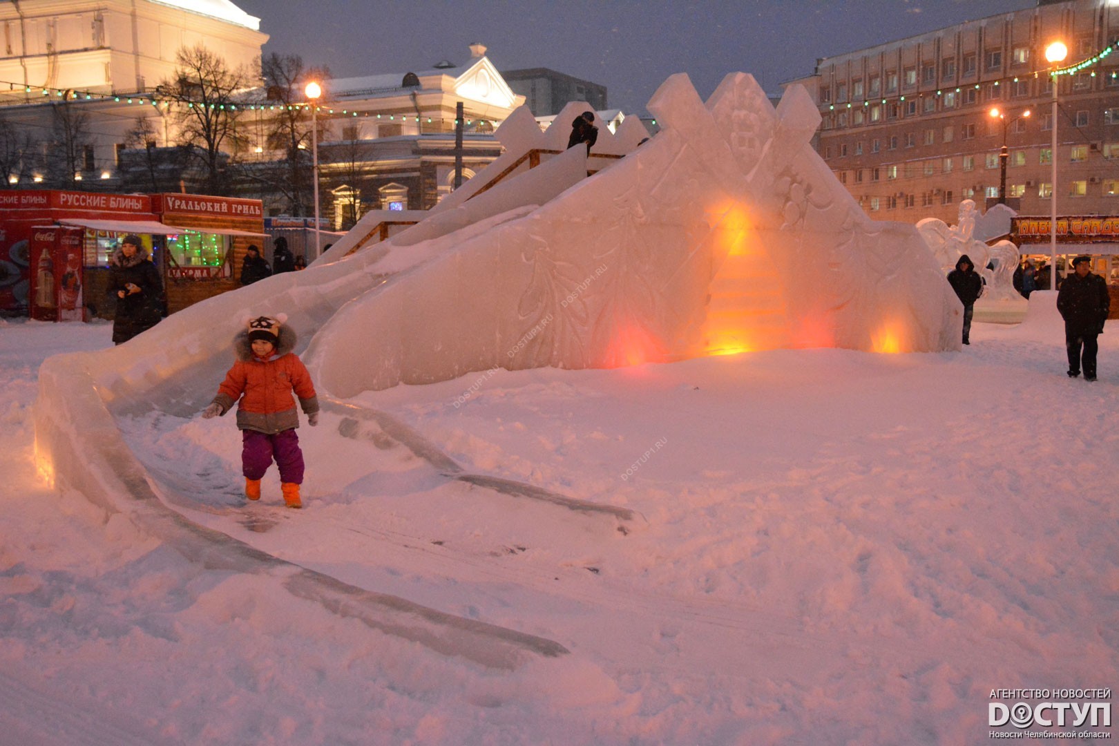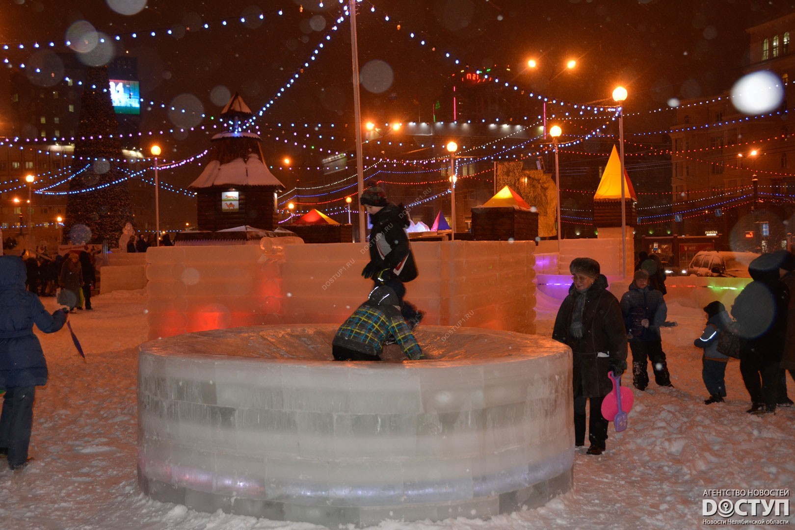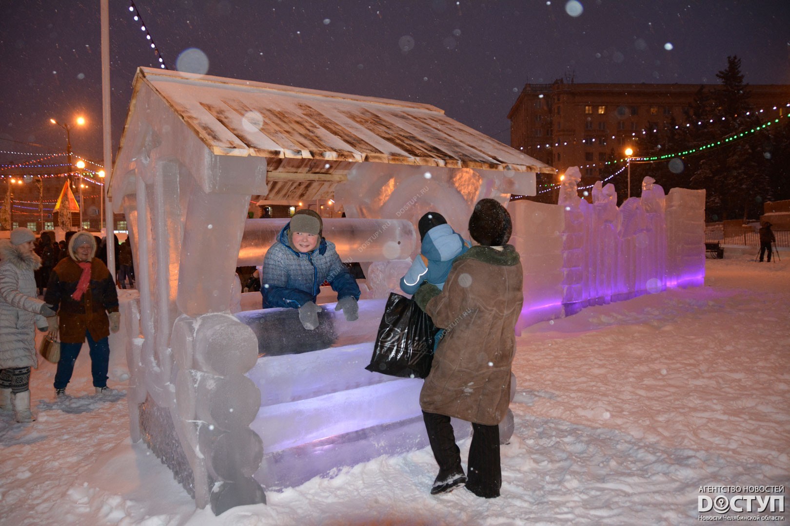 Сегодня, 25 декабря, на центральной площади Челябинска открылся ледовый городок «Крепость». Горожан ждали ледяные башни и бастионы, которые охраняли настоящие стрельцы. Также все желающие могли покататься на традиционных горках, которые в этом году стилизованы под «замороженные» народные избы.