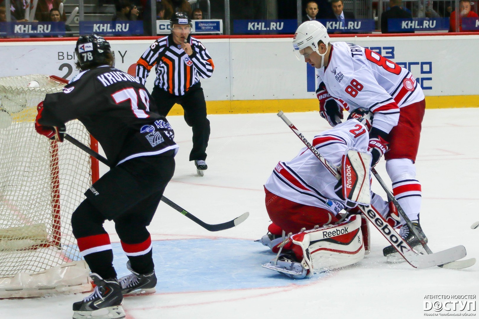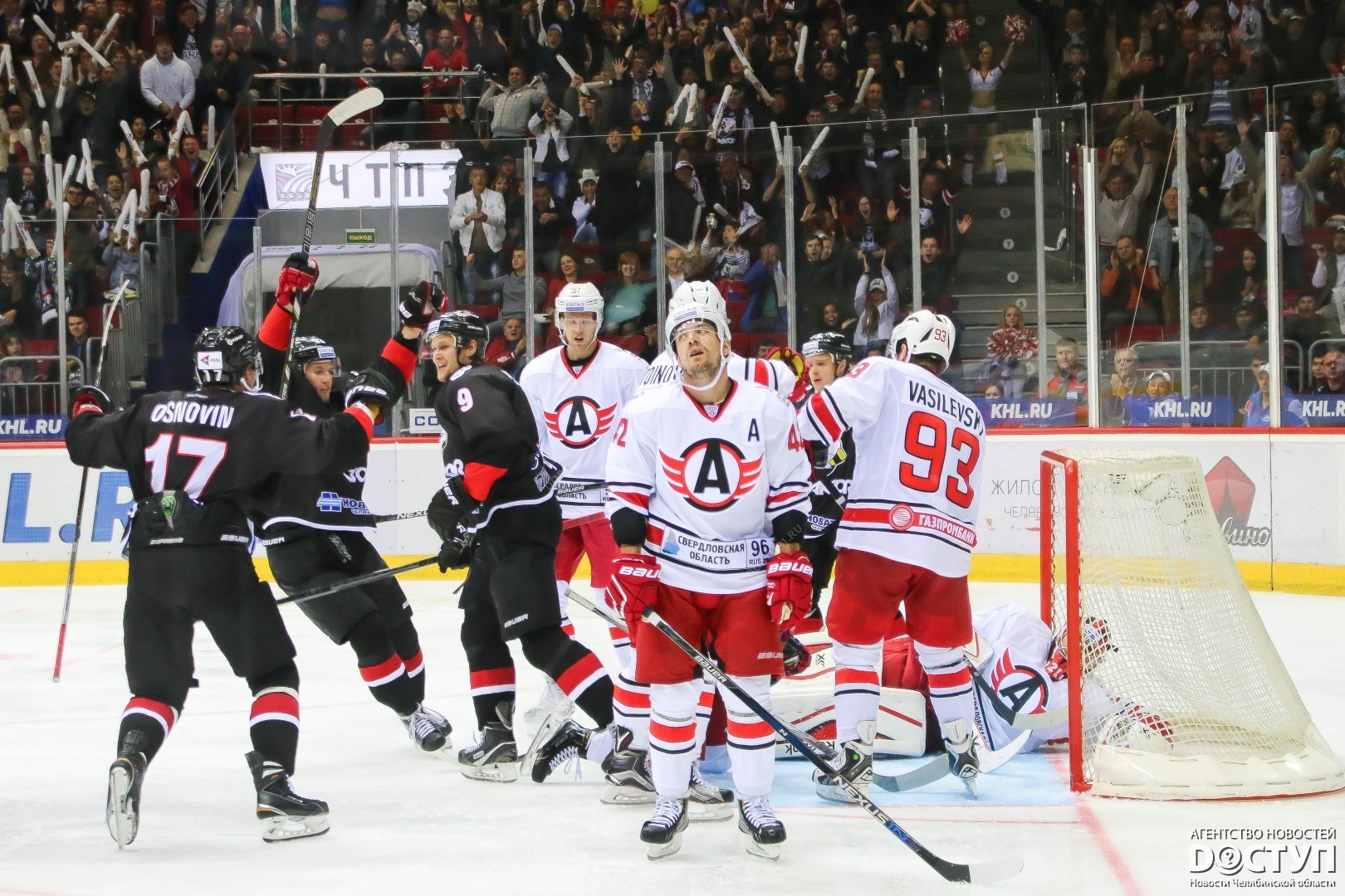 Челябинский клуб, пусть и не без проблем, но взял верх в тяжелейшем противостоянии с екатеринбургским «Автомобилистом». Уступив северным соседям в трех предсезонных матчах, подопечные Андрея Николишина взяли верх в официальной игре. Правда, не в основное время, а всего лишь по буллитам. Корреспондент АН «Доступ» запечатлел основные моменты игры, порадовался шикарному кадру взятия ворот Андреем Поповым, воздал должное боевитости игроков в уральском дерби и увидел радость на лицах челябинских болельщиков.