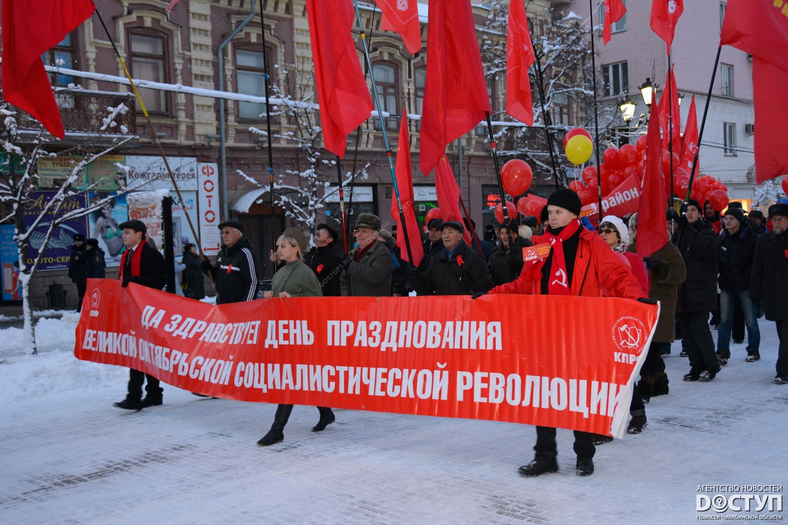 В Челябинске состоялись митинг и шествие Коммунистической партии РФ, посвященные 97-й годовщине Великой Октябрьской социалистической революции. В мероприятии приняло участие около 1 тыс. коммунистов – они прошли от театра оперы и балета до площади Революции.