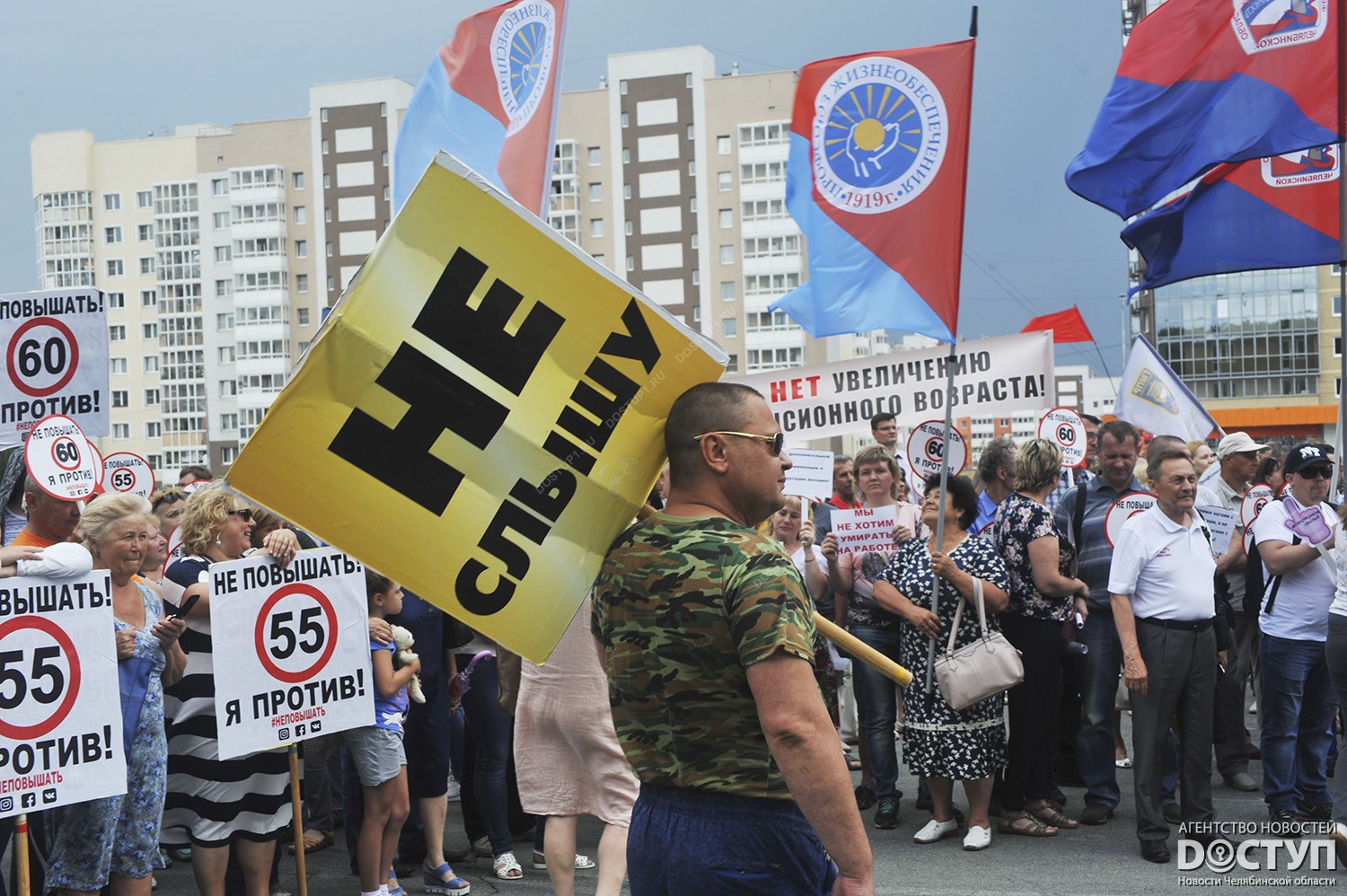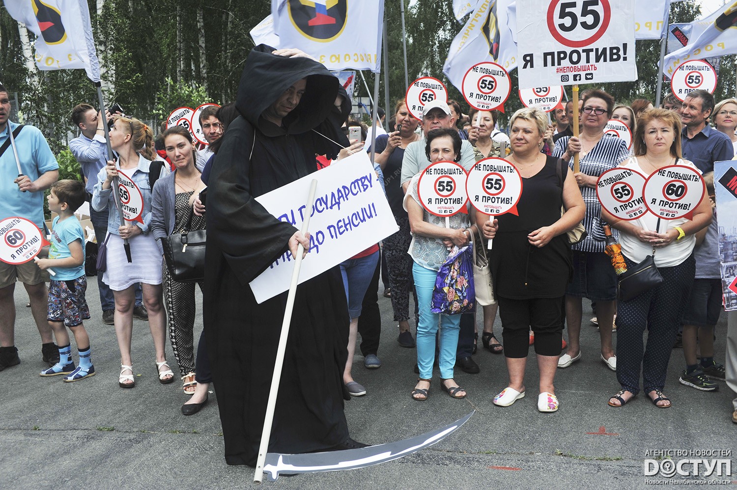 В Челябинске 5 июля состоялся митинг профсоюзов против повышения пенсионного возраста.
