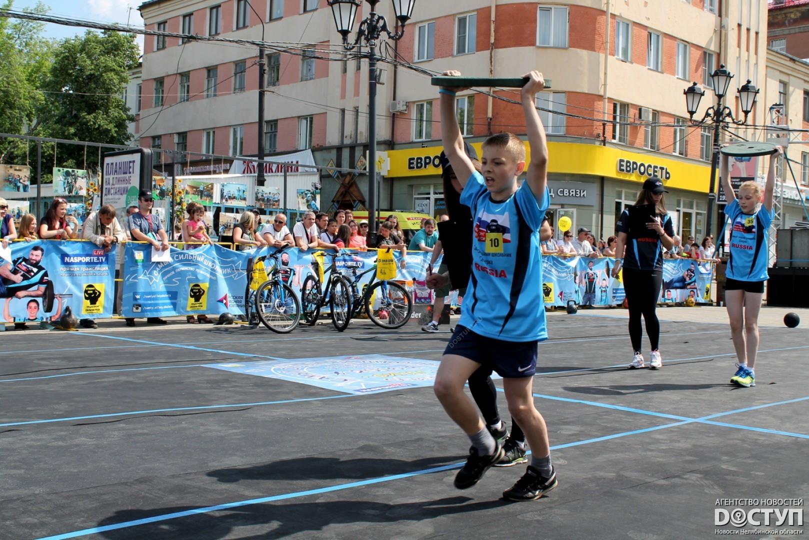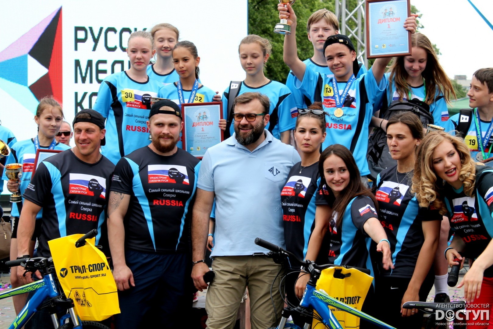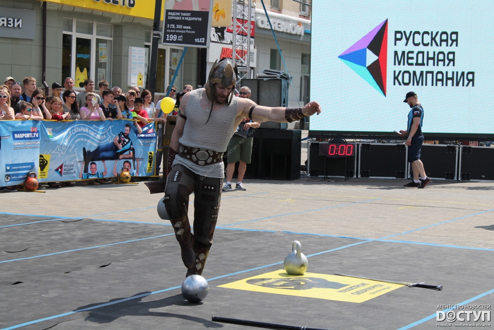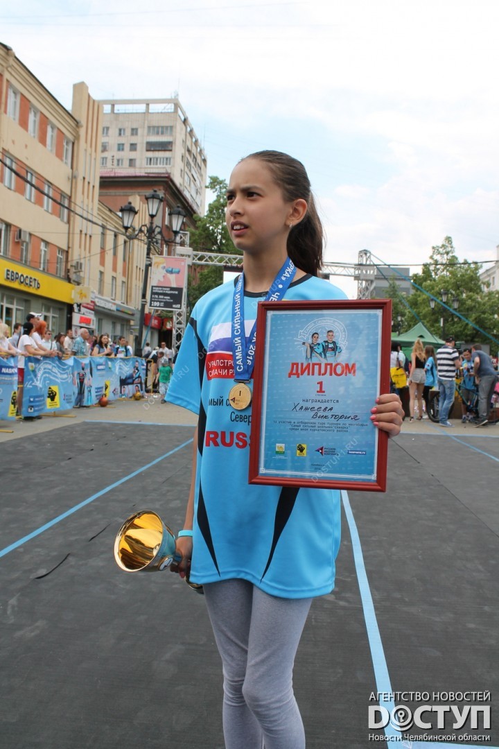 В большом спортивном празднике, организованном Русской медной компанией, приняли участие 40 юных чемпионов, самые известные челябинские стронгмены, а также звезда российского кино Михаил Пореченков.