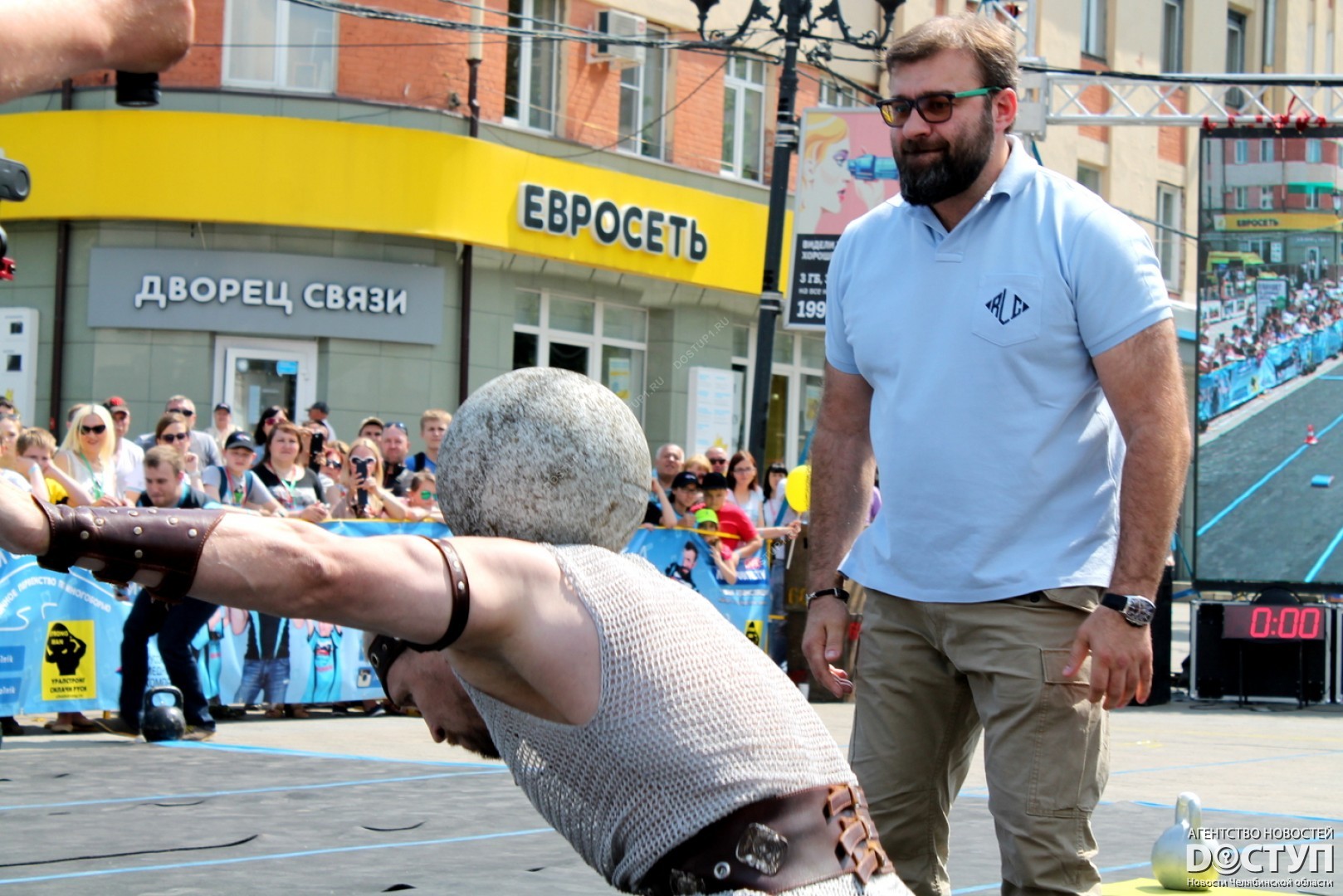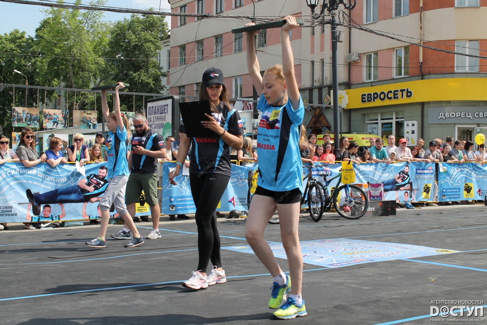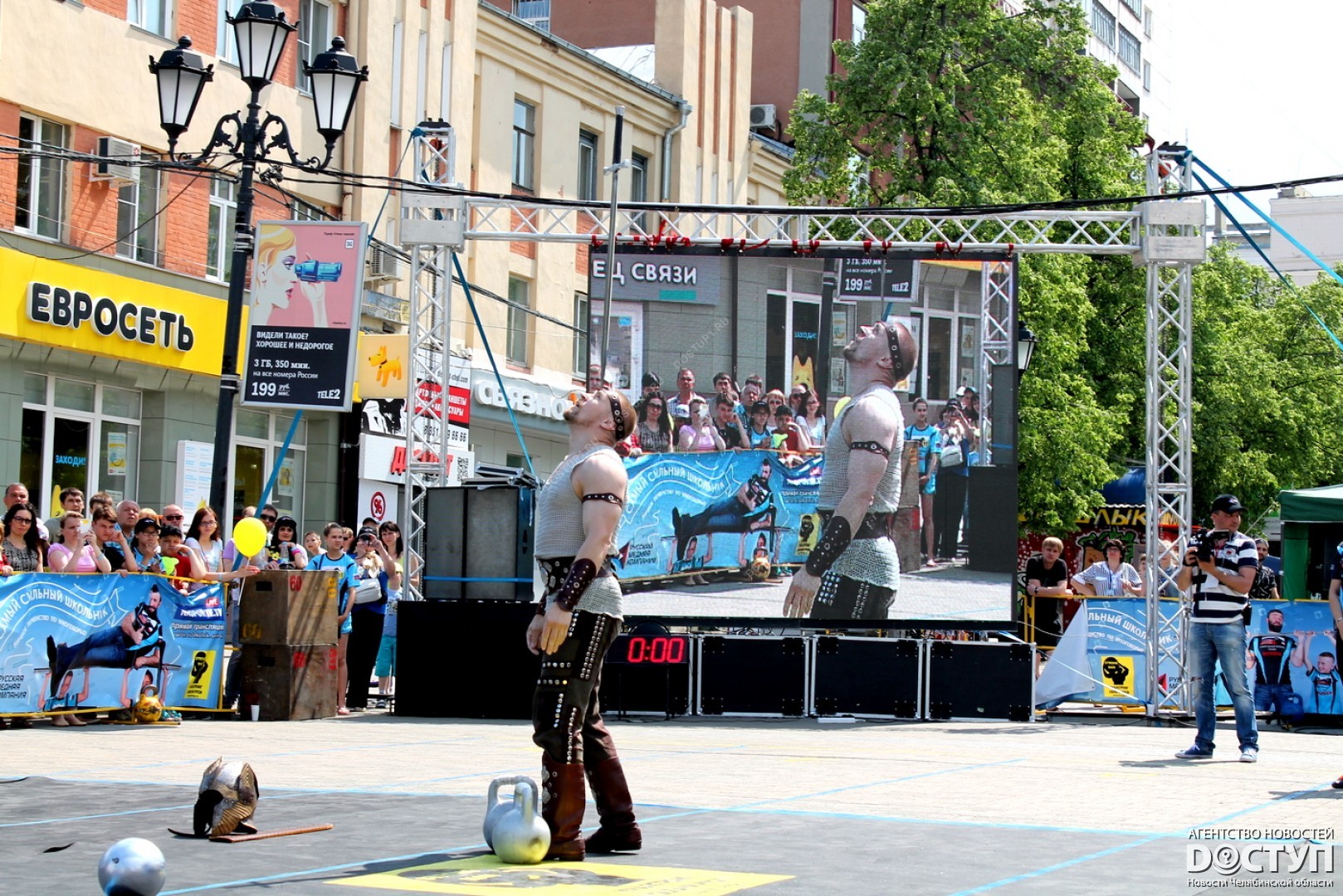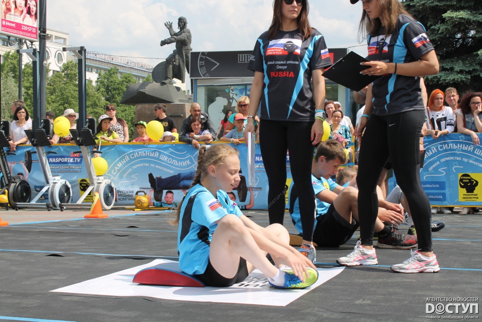 В большом спортивном празднике, организованном Русской медной компанией, приняли участие 40 юных чемпионов, самые известные челябинские стронгмены, а также звезда российского кино Михаил Пореченков.