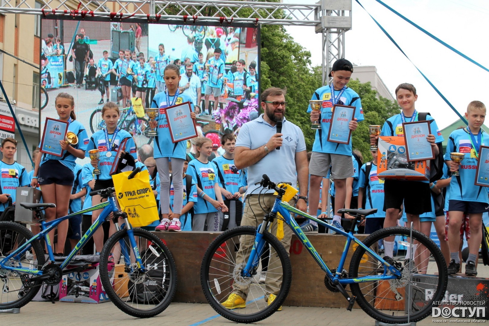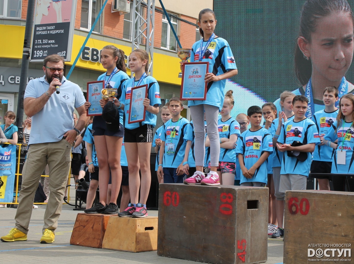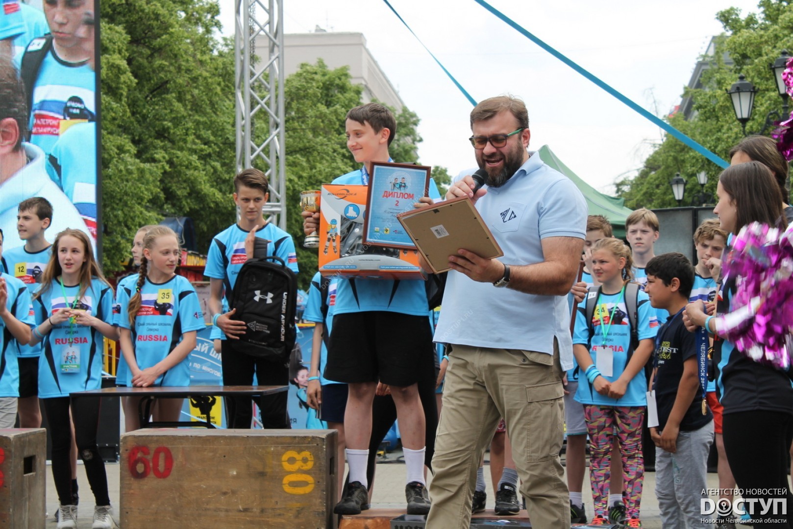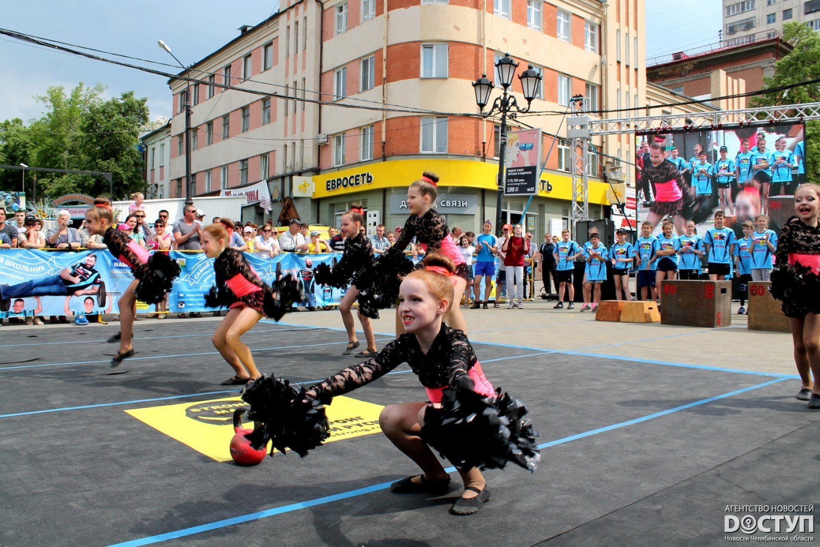 В большом спортивном празднике, организованном Русской медной компанией, приняли участие 40 юных чемпионов, самые известные челябинские стронгмены, а также звезда российского кино Михаил Пореченков.